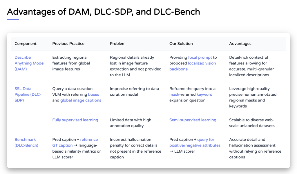 Describe Anything 3B addresses longstanding limitations in region-specific captioning by combining a context-aware architecture with a scalable, high-quality data pipeline. The model’s ability to describe localized content in both images and videos has broad applicability across domains such as accessibility tools, robotics, and video content analysis. With this release, NVIDIA provides a robust and reproducible benchmark for future research and sets a refined technical direction for the next generation of multimodal AI systems.