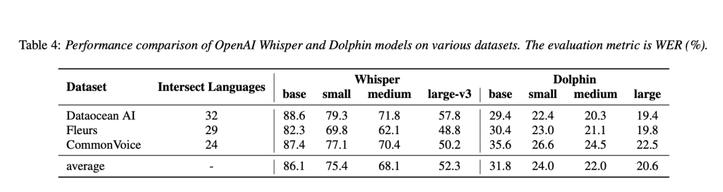 The research team released the Dolphin base and small models publicly under the Apache 2.0 license, along with associated inference code. Dolphin’s training utilized an extensive dataset encompassing 21.2 million hours of audio recordings, incorporating 7.4 million hours derived from open datasets such as Common Voice, ReazonSpeech, and GigaSpeech2, thereby ensuring robustness and replicability.