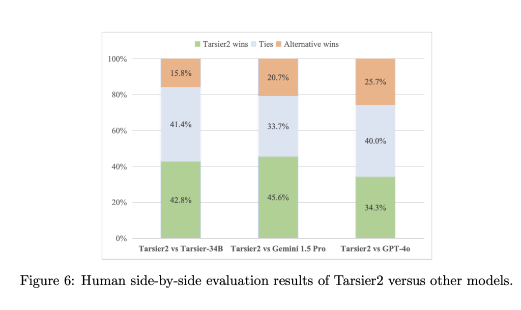 Tarsier2 integrates several technical advancements to enhance performance. The model’s architecture includes a vision encoder, vision adaptor, and a large language model, combined in a three-stage training process: