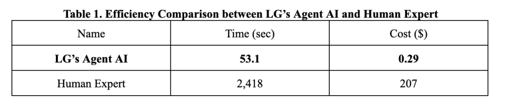 Through this robust development, Agent AI has achieved 45 times faster speed than a human expert at a cost cheaper than 700 times.